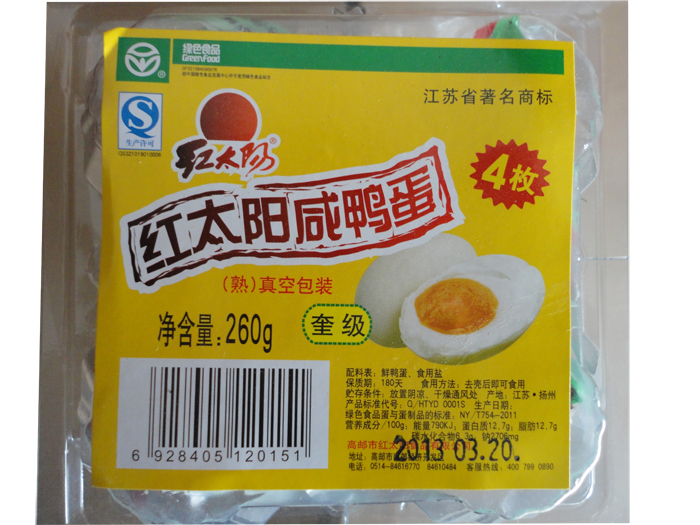 品名:红太阳咸鸭蛋/ 吸塑盒